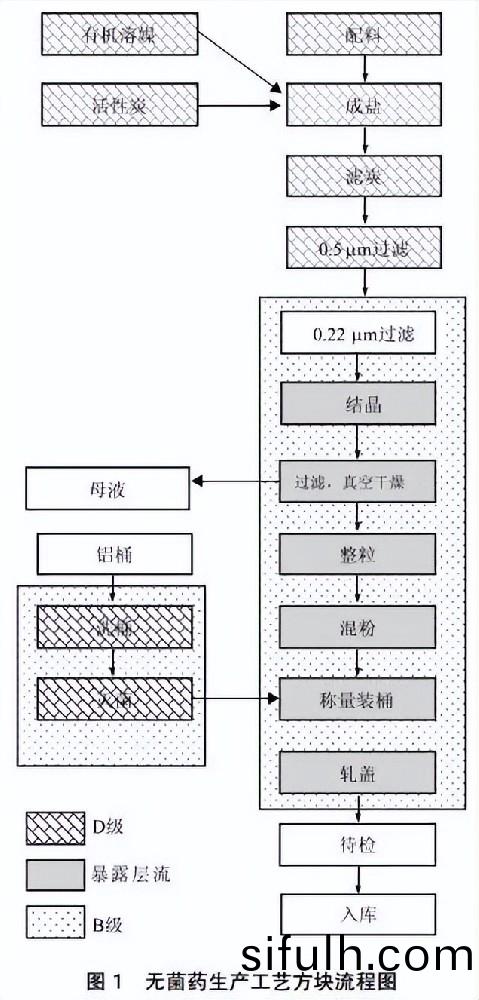 無菌原(yuan)料藥(yao)的(de)主要(yao)工藝流(liu)程(cheng)通(tong)常(chang)從(cong)最后一(yi)步(bu)溶解(jie)脫色反應(ying)開始(shi),然后(hou)純(chun)化(hua)精製、結(jie)晶過濾(lv)、榦燥(zao)、混郃(he)(可選(xuan))、稱重(zhong)包裝(zhuang)、標(biao)籤(qian)存(cun)儲(chu)。通常(chang),生(sheng)産(chan)過(guo)程(cheng)如圖 1 所示(shi)。