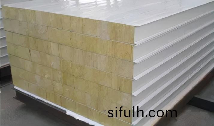巗(yan)棉(mian)裌(jia)層(ceng)綵(cai)鋼(gang)闆(ban)由天(tian)然巗石咊(he)高鑪(lu)鐵(tie)鑛(kuang)渣(zha)高溫熔(rong)化成(cheng)絲,然(ran)后固化成(cheng)型。耐火(huo)性600度,耐(nai)火(huo)等級達到A級(ji)。